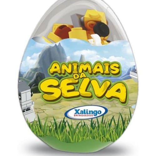 Animais da selva ovo surpresa - blocos de encaixe colecionável da xalingo. Ovinho de plástico com blocos para montar um animal da selva. São 12 modelos diferentes para misturar e criar. As peças são muito resistentes, leves e fáceis de montar. A quantidade de peças de cada varia conforme o modelo sendo de 26 a 33 peças. O ovo mede aproximadamente 8cm de altura. Não é possível escolher o modelo