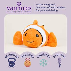 - Bicho de pelúcia para micro-ondas Warmies: Clown Fish é um brinquedo de pelúcia confortável, abraçável e adorável para todas as idades que pode ser facilmente aquecido para fornecer horas de calor relaxante ou frio no freezer para um toque refrescante e fresco. Perfeito para conforto e aconchego. 13 polegadas de altura, 1,5 libras.