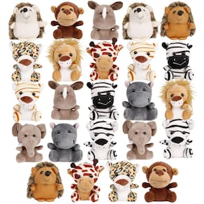 Spoilu Pequenos animais de pelúcia a granel, 24 peças fofas de pelúcia, mini animais da floresta de 11 cm, lembrancinhas de festa, meias para crianças - 24 adoráveis mini bichos de pelúcia: nosso conjunto inclui uma variedade de animais fofos e fofinhos, incluindo leão, tigre, macaco, leopardo, elefante, girafa, hipopótamo, zebra, rinoceronte, tigre branco, ouriço marrom e ouriço branco. Perfeito para festas temáticas de animais ou apenas para se divertir - Materiais de alta qualidade: feitos com algodão PP macio e seguro, nossos animais de pelúcia são confortáveis. Será divertido brincar com estes artigos de festa com tema de selva e sentir como se estivesse entrando no mundo da natureza - Portátil e versátil: cada animal mede 11,4 cm, perfeito para carregar. Eles também podem ser utilizados como decoração para quartos, mochilas escolares ou salas de aula. Eles também podem ser lembrancinhas de festa, enfeites de praia, prêmios de carnaval, brinquedos de caixa de prêmios, brinquedos de caixa de tesouro para sala de aula - Divertido e educativo: brincar com nossos bichos de pelúcia não é apenas divertido, mas também ajuda a desenvolver criatividade, imaginação, paciência e habilidade prática. Eles são uma ótima maneira de incentivar o aprendizado brincando - O presente perfeito: nossos bichos de pelúcia fofos e fofinhos são um ótimo presente para aniversários, batismos, Páscoa, Dia dos Namorados e muito mais. Qualquer pessoa que ame brinquedos de pelúcia vai adorar esses menininhos