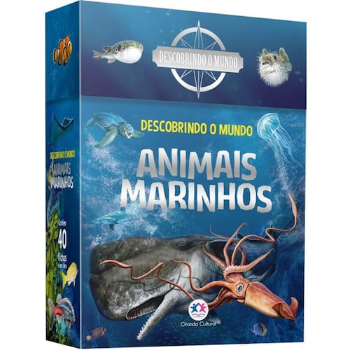 Descubra mais sobre os animais marinhos com esta caixa que contém um livro que apresenta muitas características e curiosidades sobre a fauna que habita os mares e seu entorno, além de 40 fichas ilustradas com uma atividade de perguntas e respostas e um montão de outras informações sobre as espécies de seres marinhos mais conhecidas.