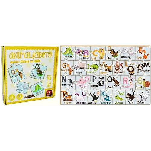 Animal Alfabeto Inglês Quebra Cabeça Brincadeira de Criança 8122