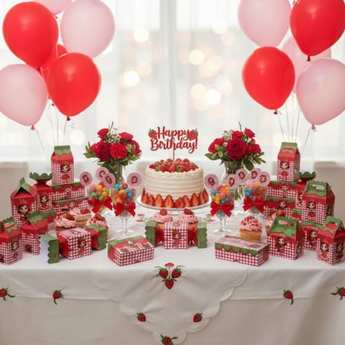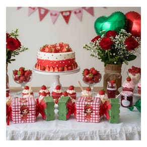 Transforme a celebração do seu amor em um momento mágico com nosso kit de lembrancinhas exclusivo! Com um design encantador no tema Moranguinho, cada detalhe foi pensado para surpreender e alegrar seus convidados.