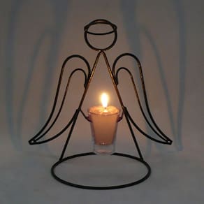 Anjo Acompanha 1 vela branca no copinho Produtos da marca Velitas. Somos uma fábrica, de velas e ferros decorativos, desde de 1984 no mercado. Anjo: Peça em ferro com pintura eletrostática, que garante uma maior resistência e durabilidade em comparação com peças esmaltadas ou com pintura spray. Pintura marrom escura, quase preta, com minúsculos pontos pretos e dourados. A pintura dá um efeito especial a peça. Peça produzida de forma artesanal. Medidas do Anjo: Largura: 23 cm Altura: 24 cm Profundidade: 23 cm Copinho de vidro: O copo de vidro é da Nadir Figueiredo, além de ser resistente ele é facilmente encontrado em vários lugares no Brasil. Medidas do copo: Altura: 7 cm diâmetro superior boca : 5,2 cm diâmetro inferior base : 3,5 cm Vela: Vela de parafina pura Petrobras. A vela pura garante uma maior durabilidade, não produz fumaça preta que possa sujar a parede ou criar um aspecto desagradável, e também possui um cheiro suave e natural da parafina. Nossas velas no copinho foram projetadas para fácil reposição já que são removíveis, o produto acompanha indicações de uso para facilitar a limpeza do copo após a utilização. Duração da vela: Aproximadamente 12 horas, o tempo pode variar de acordo com a temperatura ambiente. Medidas da vela: altura: 5,2 cm diâmetro superior boca : 4,5 cm diâmetro inferior base : 2,7 cm Imagens meramente ilustrativas, o produto pode apresentar pequenas variações por se tratar de um produto artesanal. Aviso de segurança: Acenda as velas longe de produtos inflamáveis, de corrente de ar e em recipiente protetor. Não deixe velas acesas desacompanhadas. Marca: Velitas (r)