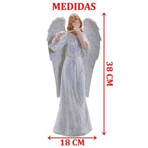 Características Gerais do Produto: - Material: Resina - Modelo: Anjo Decorativo - Cor: Branco; Prata - Dimensões aproximadas: Altura 38cm X Largura 18cm X Comprimento 10cm Garantia: - Garantia contra no