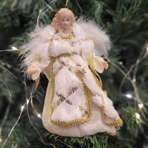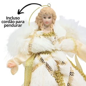 Anjo Decorativo Natal Pendente Luxo Creme e Dourado 17cm