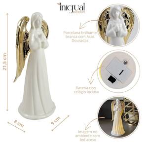 Anjo Decorativo Porcelana Branco Dourado 21cm Decoração Led Enfeite Decorativo de Anjo de Porcelana com LED Inigual Decor Adicione um toque de paz, elegância e luz à sua decoração de Natal com este Anjo Decorativo de Porcelana com LED da Inigual Decor. Esta peça é perfeita para simbolizar a serenidade e a beleza, criando um ambiente acolhedor e mágico em qualquer espaço da sua casa. Confeccionado em porcelana branca, o anjo possui um design clássico com delicadas asas na cor dourada, conferindo um visual sofisticado e atemporal. A iluminação de LED embutida projeta uma luz suave e acolhedora, destacando a figura e criando uma atmosfera de serenidade. Com 21,5 cm de altura, ele tem o tamanho ideal para mesas, prateleiras ou para compor um presépio com elegância. As pilhas já estão inclusas, permitindo que você a utilize imediatamente para iluminar sua decoração. É a escolha ideal para quem busca uma peça de alta qualidade que une a beleza da porcelana à magia da iluminação. Por Que Escolher o Anjo de Porcelana Inigual Decor Design Clássico: A porcelana branca e os detalhes dourados criam um visual elegante. Simbolismo de Paz: O anjo representa serenidade, ideal para a época natalina. Iluminação Acolhedora: Os LEDs internos proporcionam um brilho suave e convidativo. Praticidade de Uso: Com as pilhas inclusas, a peça está pronta para ser Utilizado assim que você a receber. Material de Alta Qualidade: A porcelana garante que a peça seja durável e com acabamento refinado. Especificações do Produto: Altura Aproximada: 21,5 cm Largura Aproximada: 9,0 cm Profundidade Aproximada: 8,0 cm Peso Aproximado: 410 g Material: Porcelana e LED Cor: Branco com asas douradas Conteúdo da Embalagem: 1 Enfeite Anjo Decorativo de Porcelana com LED Pilha inclusa Importante: Limpe delicadamente com um pano macio e seco. Observação: As imagens são ilustrativas. Itens decorativos adicionais exibidos nas fotos não acompanham o produto. Marca: Não Informado Ean: 7890964188226