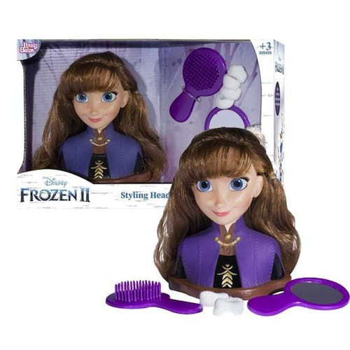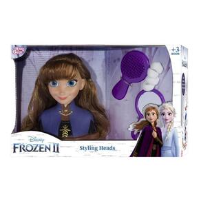 Styling Head Anna Frozen - Disney O Disney Frozen Anna Styling Head oferece infinitas possibilidades de brincadeiras com rainhas da neve Ana apresenta um lindo cabelo marrom brilhante, perfeito para pentear e pentear. A cabeça de modelagem Anna vem com 6 acessórios divertidos, incluindo: 1 escova de cabelo, 1 espelho e 4 faixas elásticas. Características: Material: Plástico; Tamanho: 16x12cm; Código INMETRO/ ANVISA CE-BRI/IQB 005352 Ean: 7896460320412