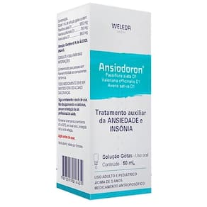 Ansiodoron líquido weleda 50mln ansiodoron é um antroposófico indicado no tratamento de ansiedade e insônia. Sua fórmula exclusiva conta com 3 ativos de origem 100% natural: officinalis, , avena sativa. Como usar o ansiodoron Adultos Administrar via oral 15 a 30 gotas, 2 vezes ao dia até melhora dos sintomas Crianças maiores de 5 anos Administrar via oral 15 gotas, 1 a 2 vezes ao dia até melhora dos sintomas ou conforme orientação médica. Composição officinalis, , avena sativa. Alérgicos Contém lactose. Quando não devo usar o ansiodoron Ansiodoron é contraindicado a pacientes com alergia aos componentes de sua fórmula. Informe seu médico sobre qualquer que esteja usando, antes do início, ou durante o tratamento. Gravidez e lactação: consultar médico. Informe ao seu médico a ocorrência de gravidez na vigência do tratamento ou após o seu término.Informar ao médico se está amamentando. Ansiodoron é um . Seu uso pode trazer riscos. Procure um médico ou um farmacêutico. Leia a bula. Medicamentos podem causar efeitos indesejados. Evite a automedicação: informe-se com o farmacêutico.