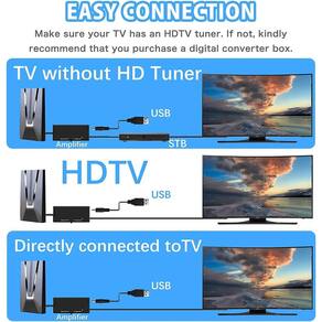 Recepção de sinal de 400 milhas: antena digital embutida, potente amplificador de sinal, que fornece alcance de 400 milhas e recepção de sinal estável. Você pode colocá-lo em quase qualquer lugar da sua casa. Abaixo de 35 milhas, acenda a luz laranja! Acima de 35 milhas, acenda a luz verde! Lembre-se sempre de digitalizar novamente após o ajuste.