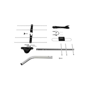 A antena acompanha um cabo coaxial de 10 metros, mastro e suporte de fixação, tudo para facilitar sua instalação.