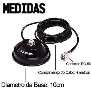 A AP0191 é uma antena Dual Band que opera nas faixas 3/8 VHF e 2x5/8 UHF , para ser utilizada com transceptores Dual Band.Sua bobina é hermeticamente fechada, possui o positivo banhado em ouro, arruela de silicone para impedir entrada de umidade entre o conector e a antena. Um produto totalmente diferenciado dos modelos encontrados no mercado.ESPECIFICAÇÕES TÉCNICASMODELO: AP191TIPO: móvelFREQUÊNCIA VHF (MHZ): 144-148FREQUENCIA UHF (MHZ): 430-440POTÊNCIA MÁXIMA (WATTS): 150IMPEDÂNCIA (OHMS): 50GANHO VHF: 3,15 dBiGANHO UHF: 6,0 dBiVSWR: Menor que 1,5:1ALTURA (MM): 860PESO (GRAMAS): 200SUPORTE MAGNÉTICO PARA ANTENA MÓVEL - ACOMPANHA CABO DE 4 METROSCom o suporte M-700K você poderá instalar sua antena em qualquer ponto da lataria do veículo. Seu imã é extremamente forte, de forma que o suporte não se solta da lataria mesmo com ventos de 180 Km/h. Acompanha ainda um adesivo na parte inferior que evita danos no local onde está instalada.ESPECIFICAÇÕES TÉCNICASCÓDIGO DO PRODUTO: M-700KTIPO DO CABO: COAXIAL RG-58COMPRIMENTO DO CABO: 4 METROSIMPEDÂNCIA: 50 OHMSMATERIAL: BASE MAGNÉTICAMATERIAL: PRODUTO EM PLÁSTICO ABSCONECTORES CABO: UHF MACHO/ BASE: UHF FÊMEAPESO DO PRODUTO: 595GItens Inclusos:01 Antena Móvel Dual Band Vhf 3/8 E Uhf 2×5/8 De Onda - Ap019101 Suporte Base Magnética Para Antena Aquário M-700k Cabo 4 metros