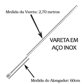Antena Móvel 1/4 de onda com prolongador. Indicada para comunicação em veículos equipados com rádio PX. Apresenta excelente rendimento, caracterizando-se como antena de maior alcance em operação móvel e recomendada para comunicação na faixa cidadão 11 metros e radioamadorismo 10 a 6 metros.Especificações técnicasCódigo do produto: PL-2003Ganho: 2.15dbiFrequência: 27mhz (opera de 21 a 54mhz)Impedância: 50 ohmsPolarização: verticalAcabamento: polidoMaterial: aço inoxidável aisi 631Peso do produto: 870gDimensões do produto: 270cmObservação: Vareta e Alongador são de Aço Inox (não entorta)Itens Inclusos:01 Antena Aquário PX 2,70 metros PL-200301 Suporte Bi-Articulado Adaptável M-65001 Cabo Coaxial 5,5 metros B-300101 Kit de Parafusos Anti-Furto