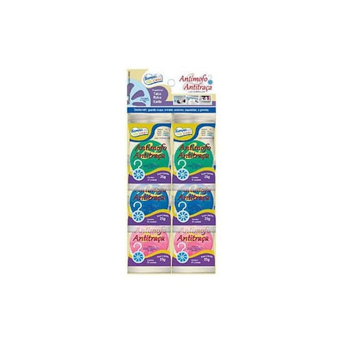 Anti mofo cart com 6 O antimofo e antitraça sampa clean protege de maneira eficaz e inteligente as suas roupas, deixando assim seu guarda-roupas com um agradável perfume. Ele vem com um suporte exclusivo em formato de cabide, é só pendurar no local desejado. Disponível em 3 fragrâncias: talco, relva e karite. Dimensões do produto: Tamanho (cxlxa): 31 x 1 x 13 Peso: 204 grs Marca: Sampa Clean