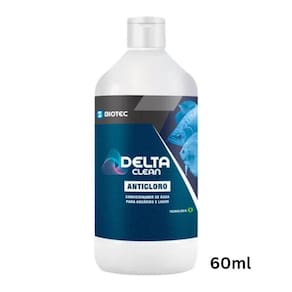 Anticloro Deltaclean 60ml Deltaclean - Proteção Essencial para Seu Aquário O DeltaClean é um condicionador de água formulado para neutralizar cloro e cloraminas de forma eficaz, tornando a água segura para todos os seres vivos do aquário. Esses compostos, comuns no tratamento da água potável, podem ser prejudiciais aos peixes e outros organismos aquáticos. - Neutraliza cloro e cloraminas, garantindo água segura. - Remove metais pesados que podem estar presentes na água de abastecimento. - Contém Aloe Vera, que reduz o , acelera a regeneração da epiderme dos peixes e previne inflamações. - Atua como prebiótico, equilibrando a microbiota do aquário e estimulando a saúde intestinal dos animais. INGREDIENTES: Tiossulfato de sódio, ácido ascórbico, extrato de Aloe vera, prebiótico e água destilada. PRECAUÇÕES: Para garantir os efeitos do produto sem comprometer a saúde dos peixes, leia as instruções de uso antes de realizar a aplicação. INSTRUÇÕES DE USO: Utilizar 1 gota para cada 2 litros de água. Utilizar 5ml para cada 200 litros de água. EMBALAGEM: 60ml - trata 2.400 litros. Mantenha seu aquário seguro e seus peixes saudáveis com DeltaClean