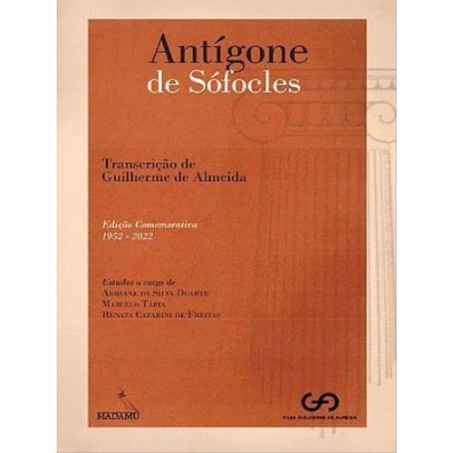 Em comemoração aos 70 anos de lançamento da transcrição de Guilherme de Almeida para a Antígone de Sófocles, a Editora Madamu lança edição comemorativa com documentos históricos e textos inéditos. Em outubro de 1952 era lançada em livro a transcrição do poeta para a Antígone de Sófocles. Considerada por muitos a melhor da língua, mantém-se ainda como referência, mesmo depois de terem sido publicadas outras cinco traduções da tragédia grega. Some-se a este feito de Guilherme o fato de ter sido sua Antígone concebida para o teatro, o que efetivamente ocorreu a partir de 21 de agosto de 1952, quando a montagem do TBC - reunindo, entre outros, os atores Cacilda Becker, Paulo Autran, Luis Linhares, Sérgio Cardoso e Ziembinski sob o comando de Adolfo Celi - levou ao “teatrinho” da Rua Major Diogo cerca de 17 mil espectadores em uma temporada de onze semanas. Neste 2022, a Editora Madamu ? em parceria com a Casa Guilherme de Almeida ? oferece edição comemorativa em que foram reunidos documentos históricos e textos inéditos: na parte histórica temos a reprodução facsimilar da edição de 1952 com os textos em grego e português, e uma versão corrigida e definitiva da transcrição de Guilherme de Almeida para a Antígone de Sófocles. Os textos inéditos são três: um ensaio sobre a transcrição de Guilherme de Almeida - a cargo do poeta, ensaísta e diretor da Casa Guilherme de Almeida, Marcelo Tápia; um estudo sobre a contemporaneidade de tragédia de Sófocles escrito por Adriane da Silva Duarte; e um capítulo sobre a montagem do TBC para as Antígones e sua crítica, elaborado por Renata Cazarini de Freitas.