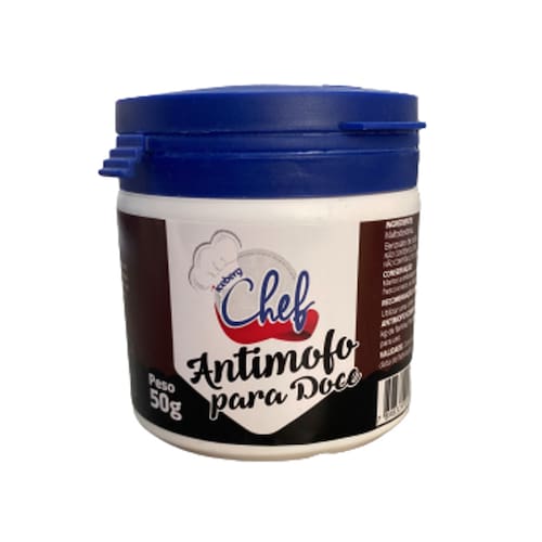Antimofo P/ Doces 50g Iceberg - CARACTERÍSTICASAntimofo para doces. Prolonga a durabilidade de seus doces e não altera o sabor, ideal para evitar a formação de mofo e bolor sem afetar a consistência da preparação! Aplique em docinhos, brigadeiros, cocadas, recheios de trufas, entre outros.Dosagem orientativa: uma colher de chá para cada kg de farinha e diluir a quantidade correta no líquido da preparação.Manter a embalagem fechado, em local fresco e seco, ao abrigo de luz e calor.INGREDIENTESAmido de milho, benzoato de sódio. N??O CONT??M GL??TEN. N??O CONT??M LEITE OU DERIVADOS.REGRAS GERAISImagens ilustrativas, as cores podem alterar conforme o seu monitorTodas as informações divulgadas são de responsabilidade do fabricante/fornecedor.Caracter?sticas Gerais do Produto:Garantia: Sem Garantia