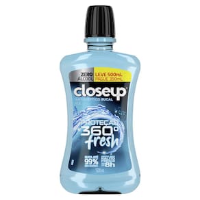 O Antisséptico Bucal Closeup Ice sem Álcool proporciona uma limpeza bucal completa, matando os germes causadores do mau hálito, prevenindo a placa e as cáries possibilitando um hálito fresco por até 8h. O Antisséptico Bucal alcança onde a escova e o fio não chegam, e age em bactérias que causam problemas bucais. Porque uma refrescância completa começa com um cuidado bucal completo para você ter toda confiança que precisa para chegar mais perto! Garante hálito fresco por até 8h com o uso de Closeup Proteção 360º Fresh. O sabor ice apresenta notas de menta específicas, proporcionando uma sensação de frescor.