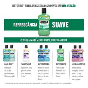O Antisséptico Bucal Listerine Anticáries Zero Álcool é ideal para ser usado diariamente, contém flúor em sua composição, ingrediente com eficácia clinicamente comprovada na prevenção da cárie. Utilizado após a escovação e o fio dental, elimina até 99% das bactérias que causam a placa, gengivite e mau hálito, e cáries e alcançando lugares aonde a escovação e o fio dental não chegam.