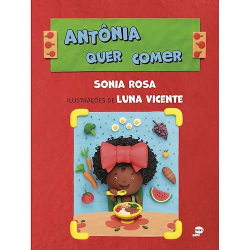 Antônia quer comer traz o cotidiano desta pequena menina, que gosta muito de comer de tudo, mas também gosta de brincar, cantar e rimar com sua mãe, seu pai e irmão. A obra descreve em linguagem simples que a hora da refeição pode ser colorida, cheirosa, saborosa e cheia de diversão. As ilustrações de Luna Vicente, feitas com a técnica da modelagem em massinha, são muito vivas em formas e cores, mas ao mesmo tempo simples para permitir que a criança preste atenção nos elementos essenciais da cena.
