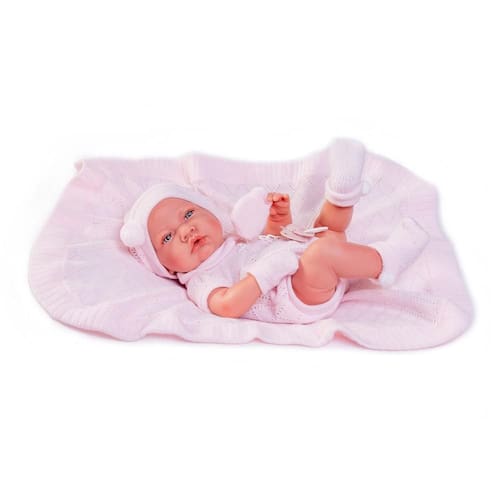 Essa encantadora recém-nascida da coleção Antonio Juan é pura ternura e ideal para crianças a partir de 3 anos. Com 42 cm de altura, a Boneca RN Lua vem com um delicado conjunto em tricô rosa, manta branca aconchegante e acessórios encantadores como gorro, luvinhas, sapatinhos e uma chupeta com corrente. Seu corpo totalmente em vinil macio e sexuado proporciona uma experiência realista e envolvente, ideal para brincadeiras de cuidado, carinho e faz de conta.
