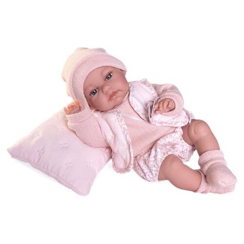 A Antonio Juan RN Toneta com Travesseiro, fabricada pela renomada marca Fun Divirta-se, é uma adorável recém-nascida da boneca Antonio Juan que transborda ternura e estilo. Com aproximadamente 34 cm de altura e corpo macio e flexível, ela pode ser posicionada de diversas formas, assim como um bebê de verdade. Seu rostinho doce e expressivo convida a muitos abraços e momentos de carinho, tornando-se a companheira ideal para brincadeiras cheias de imaginação. Ela vem vestida com um charmoso look total rosa, que mistura tecidos lisos e estampas florais com diferentes texturas, criando um visual romântico e encantador. O conjunto inclui gorro, colete, suéter, calça, meias, almofada e uma chupeta, tudo pensado para proporcionar uma experiência completa de cuidado e afeto. Esta boneca é ideal para crianças a partir de 3 anos e também é um universo de magia e doçura para brincar e sonhar.