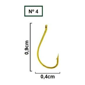 Especificações do Produto Marca: Albatroz Fishing Modelo: Keiryu-R Material: Aço Carbono Tamanho: N 4 - 0,9 cm x 0,4 cm Cor: Gold Níquel Afiado quimicamente Cartela com 25 unidades Indicado para: Pacu, Piapara, Piau Uso: Água doce e variadas modalidades Marca: Não Informado