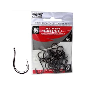 Anzol Chinu Super Strong Nº 9 Black Nickel - Marine Sports - 30 Peças Características A Marine Sports lança o Chinu Super Strong Black Nickel, confeccionado em aço carbono com revestimento em Teflon para maior durabilidade contra a corrosão, forjado com mais resistência e ponta super afiada quimicamente. Especificações Fabricante: Marine Sports Modelo: Chinu Super Strong Material: Aço Carbono Tamanho/numeração: 9 Altura: 2,50cm Largura: 1,50cm Quantidade: Cartela Com 30 Peças