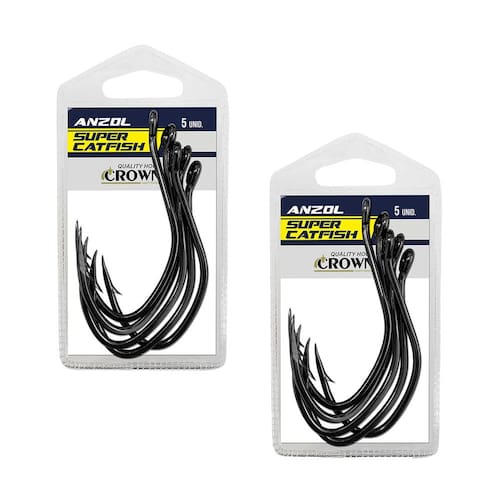 - Marca: Crown - Cor: Black - Ponta: Afiada a Laser - Material: Aço Carbono Forjado - Tamanho: 10/0 - Medidas: 7,5 cm x 3,5 cm - Quantidade: 10 Anzóis (2 Cartelas)