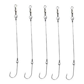 Anzol 6/0 = ; ;5cm x ; 2,3cm ; - 15,5 cm de cabo de aço 50 lb - girador = 2,3 cm.