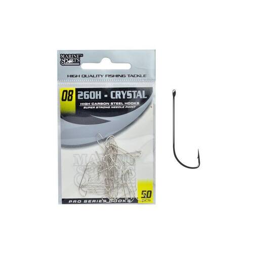 Anzol Marine Sports 260H Crystal em aço carbono de alta resistência de haste longa e espessura fina super resistente com a ponta extremamente afiado. Especificações: Fabricante: Marine Sports Modelo: 260H Crystal Material: Aço Carbono Cor: Nickel Prata Quantidade: Cartela com 50 Peças Marca: Não Informado Ean: 7898480921129