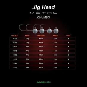 Anzol Maruri Jig Head metal Tamanho: 7g-3/0 O Anzol Maruri Jig Head é ideal para pescadores que buscam eficiência e precisão em pescarias com iscas soft. Fabricado em aço inoxidável de alta resistência, esse modelo conta com anzol de ponta única e cabeça moldada que garante estabilidade e nado natural da isca, favorecendo a captura de predadores como tucunarés, robalos, traíras e outros. Seu design oferece excelente e fixação, sendo especialmente indicado para montagem de iscas artificiais em ambientes de água doce e salgada. Com embalagem contendo 6 unidades, o Jig Head da Maruri é uma escolha versátil e confiável para diferentes técnicas de pesca esportiva. Especificações do Produto Modelo: Jig Head Marca: Maruri Material: Aço inoxidável Ponta: Única Quantidade: 6 unidades Aplicação: Iscas soft, montagens artificiais Indicado para: Peixes predadores ex: tucunaré, traíra, robalo Uso: Água doce e salgada Marca: Não Informado Ean: 7794430980836