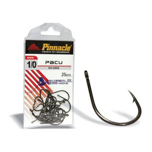 Especificações: Marca: Pinnacle Modelo: Pacu Cor: Black Anzol em aço super reforçado Pacote com 10 unidades Tamanho: Nº4/0 - 3,5cm