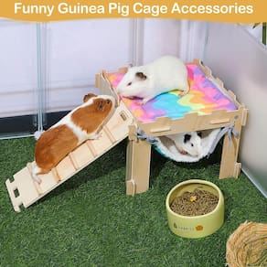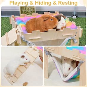 Marca: Unicorn Catcher Nome do produto: esconderijo de cobaia com rede, rede macia de cobaia Casa de madeira com escadas Brinquedos grandes para porquinhos-da-índia servem para gaiolas de cobaia. Acessórios para porquinhos-da-índia grandes para animais pequenos O pacote inclui: 1 rede de porquinho-da-índia -?Espaço de atividades de camada dupla?Rede de cobaia Unicorn Catcher usando uma plataforma superior + design de rede inferior. Existem escadas para facilitar a entrada das cobaias na plataforma, conseguindo o efeito de combinar descanso e entretenimento, proporcionando espaço suficiente para as cobaias brincarem e se esconderem. -?Tapete de porquinho-da-índia lavável à máquina?Este esconderijo de cobaias também vem com uma almofada superabsorvente para proteger a casa ou o chão da urina e fezes dos animais. A rede e a roupa de cama para porquinhos-da-índia são feitas de tecido macio, seguro e confortável, reversível e lavável à máquina quando sujas. -?Material de alta qualidade?A casa da cobaia é feita de madeira compensada de pinho de alta qualidade e resistente ao desgaste, muito respirável e adequada para roedores, construída com um método de lingueta e ranhura sem pregos, com cada canto lixado suavemente. Fácil de instalar sem cola ou pregos, evitando ferimentos em animais de estimação. Possui características estruturais, como estrutura rígida, difícil de deformar e forte capacidade de carga. -?Tamanho grande?Rede dupla tamanho 15,7 x 11,8 x 7,9 polegadas, rede única tamanho 11,4 x 11,4 x 7,9 polegadas, ambas podem acomodar várias cobaias ao mesmo tempo. Além disso, a altura da rede pode ser ajustada de acordo com a situação real, tornando-a muito flexível. A casa da cobaia também é adequada para coelhos, chinchilas, gatos, hamsters e vários pequenos animais descansarem, dormirem e brincarem. -?Amplamente utilizado?Este acessório de cobaia permite que seu animal de estimação brinque livremente em seu habitat, com várias aberturas criando uma cabana arejada, fácil de entrar e divertida de sair, criando um espaço de entretenimento para seu animal de estimação brincar. Você pode dá-lo como um ótimo presente de Natal para sua família ou amigos que têm animais de estimação pequenos.