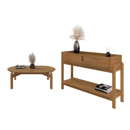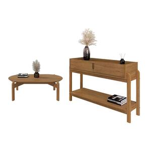 Aparador 02 Gavetas e Mesa de Centro Oblonga Lizz Cedro Casa D - Marrom Chocolate