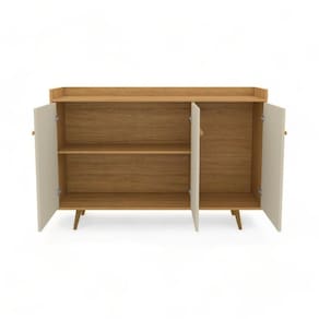 Esse aparador é uma peça versátil que pode ser usada para transformar a sua sala. Ele pode ser para guardar objetos decorativos, como vasos de plantas, quadros ou velas, ou para servir os convidados. Além disso, o aparador pode ser para criar um ponto focal na sala, seja com um espelho, uma peça de arte ou um lustre.