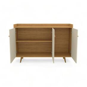 Esse aparador é uma peça versátil que pode ser usada para transformar a sua sala. Ele pode ser utilizado para guardar objetos decorativos, como vasos de plantas, quadros ou velas, ou para servir os convidados. Além disso, o aparador pode ser utilizado para criar um ponto focal na sala, seja com um espelho, uma peça de arte ou um lustre.