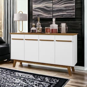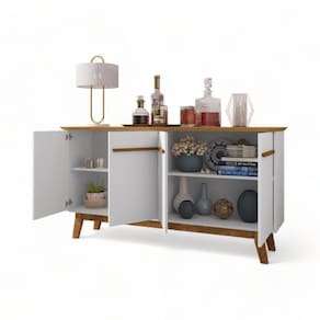 O aparador é uma peça versátil e elegante que pode ser usada em diversos ambientes da casa. Na sala, ele pode servir como um buffet para servir os convidados, como um aparador para guardar objetos decorativos ou como um bar para preparar drinks!