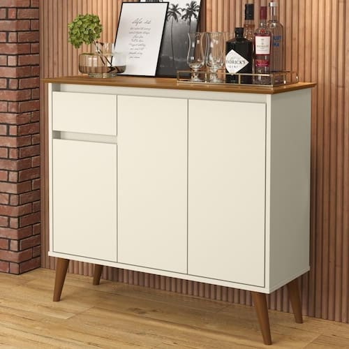 OAparadorIdeal para organizar e decorar seu ambiente, possui design diferenciado, que mistura sofisticação e modernidade, proporcionando um toque de elegância e sutileza ao seu ambiente,com pés de madeira palito retrô,tampo superior com detalhe fresado!