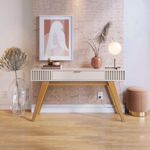 Multifuncional e inspirado no estilo retrô, o aparador Rivieira é uma ótima solução para compor ambientes de sala de estar, salas de jantar, hall de entrada ou até mesmo servir como divisor de ambientes. O móvel possui uma gaveta multiuso, pés em madeira maciça, ripas decorativas em suas laterais, além de um tampo espaçoso que pode ser utilizado para decorações, possibilitando a disposição de taças, bebidas e demais objetos.