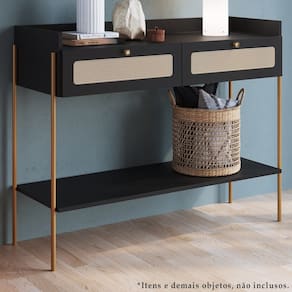 Aparador Palhinha 28935, Linha Oslo Artesano. Traz como característica um traço artesanal, suave e acolhedor. Possui estrutura em MDP de 15mm, acabamento em pintura BP e Pés de tubo metálico em aço com pintura epóxi na cor dourada. Composto por 02 gavetas com corrediças metálicas, puxadores de poliestireno na cor Dourado, aplique de tela sintética (PVC com poliéster), fixada na parte externa das gavetas, as extremidades dos pés possuem ponteiras plásticas para evitar atrito do móvel com o piso, afim de evitar acidentes, móvel com design escandinavo minimalista, é a opção ideal para um ambiente com toque sofisticado e ao mesmo tempo aconchegante. Mais produtos da Linha Oslo, você encontra em nosso site, podendo fazer a composição completa para sua casa, são diversos itens com design prático e funcional para tornar a vida mais facil e a casa mais alegre. Este móvel chegará em sua casa separado em 02 volumes.