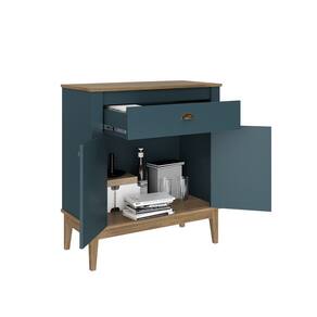 Aparador 2 Portas 1 Gaveta com Pés de Madeira Colonial Movelbento - Azul Marinho | Castanho