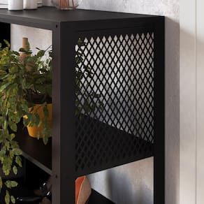 O Aparador P1021 da Placa & Ponto possui pés e laterias em metal. Suas laterais possuem detalhe em tela, seguindo o estilo industrial que tornou-se uma das principais tendências em arquitetura e decoração atual. Acabamento: Finish Foil Acabamento da Prateleira: Finish Foil Acabamento dos Pés: Pintura Altura dos Pés: 12 Ambiente Principal: Sala de Estar Complexidade da Montagem: Média: pode ser montado por mais de uma pessoa e/ou necessite de maior conhecimento para montagem Cor: Preto Cor do Produto: Preto Cor Flex: Não Cor Interna: Preto Escala de Brilho: Fosco Escala de Brilho da Prateleira: Fosco Itens Inclusos: 1 aparador e manual de montagem Linha ou Coleção: Placa e Ponto Manual de Montagem e Instalação: https://product-hub-prd.madeiramadeira.com.br/866029/documents/6abccd1c-9fd0-4ae9-bc5a-4b5441237cb5578982701017006p1021manual.pdf Material da Prateleira: MDP Material dos Pés: Metal Material Principal: MDP Montagem Flex: Não Necessita Montagem: Sim Origem do Produto: Nacional Pés Reguláveis: Não Peso: 28.5 Peso Máximo por Prateleira: 10 Possui Adega: Não Possui Bandeja: Não Possui Possui Espelho: Não Possui Gavetas: Não Possui Pés: 02 Possui Portas: Não Possui Prateleiras: 01 Possui Rodízio: Não Possui Vidro: Não Recomendações de Uso, Manutenção e Limpeza: Para a limpeza do móvel utilizar uma flanela seca. Sapatas Niveladoras: Não Sistema de Montagem: Parafusos e cavilhas Suporta Até (kg): 30 Ean: 7909903399880