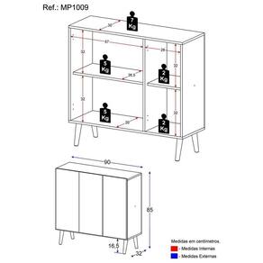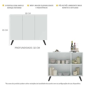 Aparador 3 Portas Retrô Veneza Mp1009 Branco/Preto