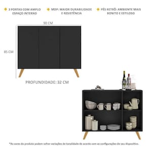 Aparador Buffet 3 Portas Retrô Veneza Multimóveis Mp1009 Preto/natural