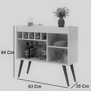 O Aparador Adega Odin - EJ Móveis é a combinação perfeita de elegância e praticidade. Compacto e charmoso, conta com um design retrô graças aos pés palito em madeira maciça, tampo superior estilo bandeja e espaço para armazenar até 5 garrafas em sua adega. Além disso, possui um nicho que facilita a organização e decoração do ambiente, tornando-se a escolha ideal para complementar diversos espaços da casa.