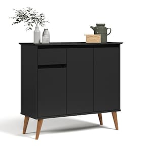 Buffet aparador foi projetado para agregar diferentes espaços e ambientes, proporcionando elegância, charme e sofisticação. Conta com uma gaveta para organização de objetos com corrediças telescópicas deixando a abertura e o fechamento muito mais delicado e macio, que aumentando a durabilidade do produto. Dimensões do produto montado: Altura: 83 cm Largura: 93 cm Profundidade: 35 cm Características: - Material MDF/MDP - Cor preto - Nicho - Pés - Prateleira - Porta - Gaveta Itens Incluso: 01 Aparador. Kit completo para montagem. Manual de montagem. Observações: - Não nos responsabilizamos pela montagem do produto. - Sistema de Montagem: Parafusos, Cavilhas e Tampos. - É recomendado que a montagem seja feita por um profissional qualificado. - As imagens indicam uma sugestão de uso e são apenas ilustrativas, os objetos decorativos não estão inclusos. - Ao iniciar a montagem, forre o chão com o papelão das embalagens para proteger as peças de arranhões. Instruções e Cuidados: Limpar com pano seco, manter em lugar livre de umidade, ao abrigo de exposição direta ao sol.