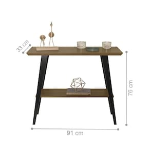 Seu Tampo é produzido em MDF de 15 mm e Encabeçamento de 15 mm, dando visibilidade de um Tampo com espessura de 30mm. Com Pés em Madeira Pinus e possui 1 Prateleira em MDF de 15mm.