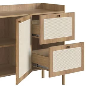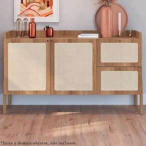 Aparador Balcão Buffet 139 Cm Pés Madeira 27969 Oslo, possui design sutil e elegante, é o móvel perfeito para valorizar ainda mais seu ambiente. Estrutura em MDP de 15 mm e fundo de HDF de 13 mm, ambos com acabamento BP. Possui 02 gavetas com corrediças telescópicas, 02 portas com dobradiças metálicas e ambas contam com aplique de tela sintética (PVC e poliester) e puxadores em poliestireno na cor dourada, agregando ainda mais nobreza ao móvel. Conta também com prateleira e divisória interna em MDP. Seus pés são confeccionados em madeira de eucalipto com sapatas emborrachadas afim de evitar atrito no piso do cômodo. Capacidade de peso suportado: 32kg (5kg em cada gaveta, 4kg na prateleira central e base, 10kg no tampo). Com seus traços suaves e paleta de cores acolhedoras, ele irá conferir sofisticação e aconchego ao seu ambiente. Este móvel chegará na sua casa separado em 02 volumes.