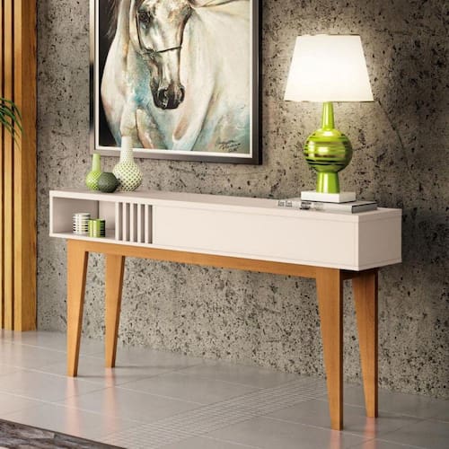 Características: Estrutura em MDP e MDF Pés em madeira maciça envernizado Detalhes ripados Nicho