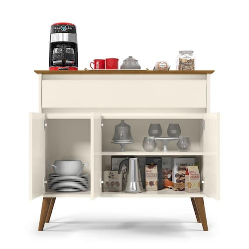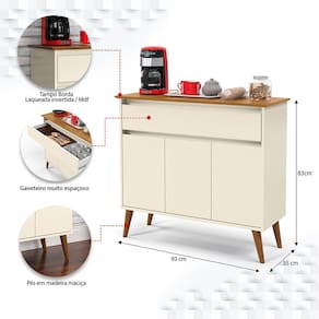 O Aparador Buffet Zeus foi produzido pensando em você que busca por um móvel que organize e decore seu ambiente.Ele conta com três compartimentos internos, ideais para armazenar utensílios de cozinha, como: pratos, copos, taças, entre outros. Também conta com uma ampla gaveta que irá lhe auxiliar na acomodação de itens menores, como talheres, jogos americanos, panos de prato e muito mais.O produto conta com três portas e um tampo espaçoso, proporcionando utilizar o mesmo na sala de estar para acomodar objetos decorativos ou no seu cantinho do café.O Aparador Zeus é um produto versátil e funcional que irá levar praticidade e sofisticação ao seu dia-a-dia.Dimensões do produto montado:Altura: 83 cmLargura: 93 cmProfundidade: 35Peso suportado: 30 kg distribuídos.Observações:- Tampo fresado em MDF;- Produzido em MDP;- 3 Portas;- 1 Gaveta;- Sem puxadores;- Pés Pinus em madeira maciça 18 cm;- Corrediças e dobradiças metálicas;- Os objetos que ambientam as fotos não acompanham o produto;- O produto será entregue desmontado;- É de inteira responsabilidade do cliente a montagem do produto e/ou instalação, custos de transporte por escadas e/ou elevadores, guincho ou içamento, assim como possíveis danos provenientes de manuseio inadequado;- Embora o produto acompanhe o manual de montagem, verifique a complexidade antes de decidir montá-lo sozinho, recomendamos que contrate um profissional de sua confiança;- Mantenha as informações de contato e endereço de entrega atualizadas para entrarmos em contato, caso seja necessário;- Fique atento, nossas cores podem sofrer alterações dependendo do seu monitor;- ANTES DE MONTAR O SEU PRODUTO, certifique-se que todas as instruções dispostas no manual, bem como todas as ferragens descritas, estejam presentes dentro da embalagem. Verifique se há alguma peça danificada, caso esteja, prestaremos a devida assistência dentro do prazo da garantia;- Imagens meramente ilustrativas.